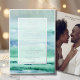 Where the tide meets the vows. This beach-inspired wedding invitation features soft watercolor washes in tranquil blues and seafoam greens, capturing the peaceful rhythm of ocean waves and coastal skies. The front showcases elegant typography, while the back offers space for a personal photo—adding warmth and intimacy to your announcement.