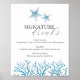 Enhance your beach wedding decor with this elegant signature drinks menu, featuring watercolor starfish and sea coral in stunning shades of blue. Inspired by the ocean, this coastal-themed bar sign adds a stylish touch to your wedding reception.