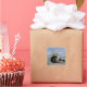This envelope seal offers a beautiful way to further personalize your beach wedding invitations. This photo captures a large piece of driftwood that has been washed up onto a Pacific Ocean beach and has slowly formed a hollow circle in it's centre. The brown sand compliments the blue sky studded with layers of clouds. The bride and groom's name along with the wedding date can easily be personalized.
