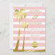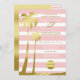 Beach Wedding Gold Glitter Palm Trees Pink Stripes Invitation