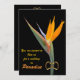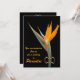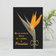 Destination Island wedding on the beach. Invitation to sunset wedding on a tropical beach with Bird of paradise flower on black background with golden linked hearts. Image and illustration composition. Customize this invite with your own words and choose your favourite font and colour.