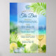 Display your beach wedding open bar menu with this bright, joyful design featuring a golden beach with turquoise sea and blue sky with bokeh lights, decorated by a clear glass of wine with grapes and refreshing glass of ice cold mojito with mint and lime over fresh green palm tree leaves. Perfect for beach weddings, destination weddings, tropical weddings, island weddings, summer weddings and other sea-related events. Please visit the collection to see the entire suite.