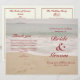 This beach wedding program features a background of a photo of a sandy beach on the cover while the inside of the program features a plain ivory background. You can easily personalize with your own information. Feel free to add and delete text as needed. We also offer coordinating invitations and enclosure cards, save the dates, stamps, favour stickers, thank you notes, magnets and other items to create a cohesive look to any wedding celebration.
