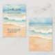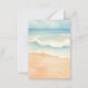 A watercolored sandy beach, ocean waves and blue sky. Personalize and add the reply by date.