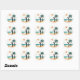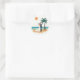 Includes 20 small stickers on one sheet. Adorable sticker featuring a bride and groom on a tropical beach with a palm tree and setting sun, perfect for wedding decorations.