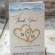 Send your heartfelt thanks with this romantic beach wedding thank you card featuring watercolor ocean waves and two hearts drawn in the sand. A beautiful way to thank guests for attending your seaside or destination celebration. Personalize with your names and wedding date for a meaningful keepsake they’ll remember.