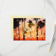 Done in a fun retro style this sunset and palm trees design with strings of lights is so romantic and easy to customize at no extra cost. These are bound to impress your guests.