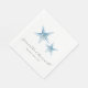 Add a coastal touch to your wedding decor with these elegant beach wedding cocktail napkins, featuring watercolor starfish (sea stars) in dusty blue. Designed for tropical summer weddings, these napkins beautifully showcase the bride and groom’s names in a scripty typeface, adding a personalized and sophisticated detail to your special day.