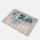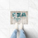Welcome your beach house or cottage guests with this nautical coastal modern white and teal blue typography doormat featuring a big SEA life typography script and trendy modern hand-drawn undersea starfish and coral reefs over a beach natural barn wood background.
