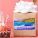 shows colourful quiet cove from original painting with "beachcomber island" slogan !