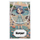 A pastel-hued chibi girl with a playful bob of purple hair and bright blue eyes is on the sandy shore, engrossed in the miniature world of rock pools. Sunlight filters through the clear water, illuminating the hidden treasures within. The tide has receded, leaving behind an array of fascinating creatures, each one a wonder to behold. Did you know that some species of sea anemones can live for over a century?