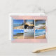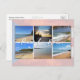 A view postcard featuring a variety of beaches in the island of Puerto Rico. The Puerto Rican flag serves as a background.