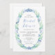 This beachy bridal shower invitation features a watercolor shell and sea life wreath. Perfect for a bridal shower by the sea!