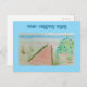 Watercolor of Christmas tree on the beach with Warm Christmas Wishes as greeting on a postcard.