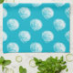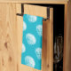 Coastal white seashells patterned kitchen towel with customizable background colour.