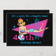 Fun retro 40th birthday invitations featuring a beach babe wearing sunglasses, a blue polka dotted bikini and a pink tiara. A big pink white and blue beach ball is the zero in the word 40th. Customizable text. Perfect for your favourite beach babe on this milestone birthday. Also available T-shirts, tote bags, caps, mugs, postage stamps and more! PinkInkArt original!