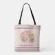 This stylish, watercolor-look tote features a muted rainbow colour nautilus bordered on the top and bottom by matching stripes in soft, dusty purple, boho sage green, and soft spring cherry. Your monogram name -- or initials if you prefer -- appear in a fashionable font in the matching cherry colour. Make sure to type what you want in the Peronalize section.