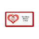 * Pretty heart with Valentine's Day Text. Add your text or address to personalize. Labels are available in three sizes and the bold red border can be removed, too. Click the CUSTOMIZE button to get started!
