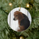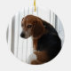 This portrait is a photo of a senior beagle making a silly, cute beagle face.