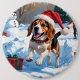 Beagle Christmas Festive Snow Scene 6 Inch Round Button