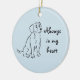 Remember a special Beagle friend with this sweet ornament and its dog sketch. "Always in my heart" is the slogan next to this cute ink drawing, and on the back you can personalize the text with your own dog's name and dates. More customization is possible with the ornament colour too.