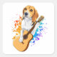 Beagle Dog Playing Acoustic Guitar Square Sticker
