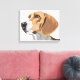 This beautiful canvas features my portrait of a tan and white Beagle on a white background. It is available in a range of sizes.