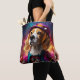 A playful Beagle dressed in a vibrant, whimsical costume against a glowing, magical backdrop. This enchanting design is perfect for animal lovers.