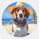 Beagle on Beach, summer gift for dog lovers Classic Round Sticker