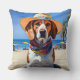 Beagle on Beach, summer gift for dog lovers Throw Pillow