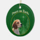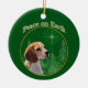 Peace on Earth. Show your reason for the season with your Beagle in this unique dog design accented with green and gold. Goes great on an ornament, greeting card or sticker.