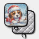 Beagle Puppy in Christmas Outfit Enjoying The Snow Pot Holder