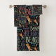 Beagle silhouette and word art pattern bath towel set