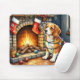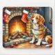 Beagle Sitting by Fireplace with Christmas Lights Mouse Pad