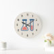 A clock with a cute drawing of a test tube and beaker. Perfect for science lovers.