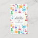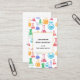 Business cards with a fun and colourful pattern. Research scientist vibe with beakers and flasks of different shapes and sizes in bright happy colours.
