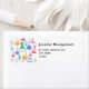 Étiquette de adresse avec un motif amusant et coloré. Un scientifique de recherche vibe avec des beakers et des flacons de différentes formes et tailles dans des couleurs vives et joyeuses.