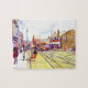 Jigsaw puzzle printed from a painting of the Town Area at Beamish Museum,the tram on the left is a Newcastle car and the one on the right is a Sunderland car.