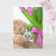 Brown teddy bear with pink tulip bouquet and greeting card to match for 106th birthday.