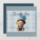 Créez un carte de remerciements de baby shower unique aux couleurs bleues, et un ours en peluche chic décontracté avec en vichy et ballons. Portez Jean Baby design sur le devant. Inclure votre message spécial avec votre nom au verso. Option carte plat. Utilisez le modèle pour personnaliser.