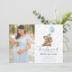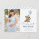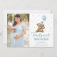 Let your loved ones know how much they're loved with this blue teddy bear holding balloon baby boy shower photo invitation.