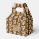 A cute brown favour box with a little cartoon bear cub pattern . Ideal for baby shower or toddler birthday with a woodland theme . Personalize it using the template .