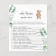 Watercolor bear is on the way baby shower games.