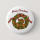 Cute, picture of a bear sitting in a wreath, is featured on this Christmas button pin. With message, "Beary Christmas", this makes a great button to wear yourself or give as a gift for Christmas time. Colourful and made in the USA!