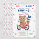Celebrate the upcoming arrival of your little firecracker with this adorable Bear on Bike 4th of July Baby Shower Invitation! Featuring a charming bear riding a vintage bicycle, decorated with festive red, white, and blue balloons, patriotic bunting, and sparklers, this design is perfect for a summer baby shower with an Independence Day theme. The rustic yet whimsical style adds a sweet touch, making it ideal for honouring the mom-to-be in star-spangled fashion. Personalize the details to create an invitation that’s as special as your celebration!