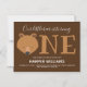 Our little cub is turning one first baby birthday magnetic invitation. This invitation has a brown background and the word "One" in large letters with a bear face illustration as the first letter of the word. Simply, customize this magnetic invitation, add it to your cart, and happy birthday to your wonderful baby!