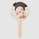 Bear baby photo first birthday hand fans for your party. These paper fans have a white and brown design with the word "One" in large letters with a bear face illustration as the first letter of the word. Simply customize the fans with your baby’s name & photo, add these fans to your cart, and happy birthday to your wonderful baby!