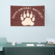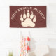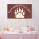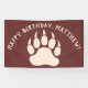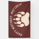This custom banner is perfect for rustic outdoorsy birthday parties or camping themed events. It features a maroon colored background with an illustration of a bear paw in ivory and your own custom message in ivory lettering.