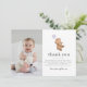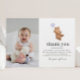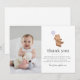 A photo thank you card featuring a sweet bear holding a purple balloon. Ideal for thanking your guests for coming to your 1st Birthday party! You can add your own photo to this design.