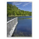 A photographic image of the small rural community of Bear River in the Atlantic Canadian province of Nova Scotia located on the East Coast of Canada. This image features a blue river surround by green wetlands grass with a green forest of trees in the background and a vibrant blue sky with some wispy white clouds. In the foreground there is a white deck extending out into the water which drowns your eyes through the image. This image gives a sense of peace, tranquillity and serenity. The feeling of back to nature and relaxation.